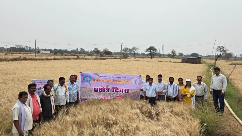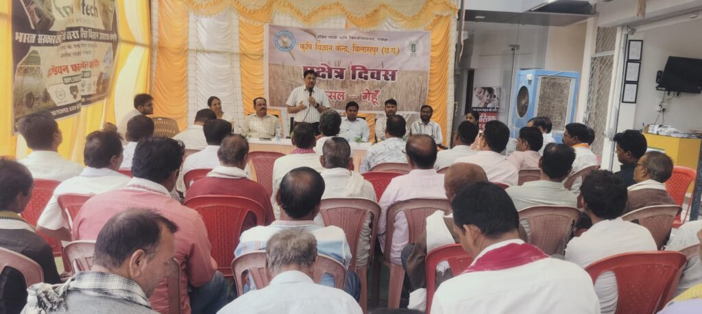 बिलासपुर। बिलासपुर कृषि ज्ञान केंद्र द्वारा संचालित योजना समूह अग्रिम भक्ति प्रदर्शन गेहूं अंतर्गत प्रक्षेत्र दिवस ग्राम पचपेडी़ में आयोजित किया गय। कार्यक्रम में प्रमुख रूप से सरपंच प्रतिनिधि चंद्र प्रकाश कुर्रे के द्वारा किया जिसमें उन्होंने प्रदर्शन से होने वाले लाभ वे गेहूं के उत्पादन अधिक होने की सराहना की संस्था प्रमुख डॉ. गीत शर्मा वरिष्ठ वैज्ञानिक एवं प्रमुख द्वारा योजना के बारे में विस्तृत जानकारी देते हुए गेहूं में जल प्रबंधन के बारे में विस्तृत जानकारी दी