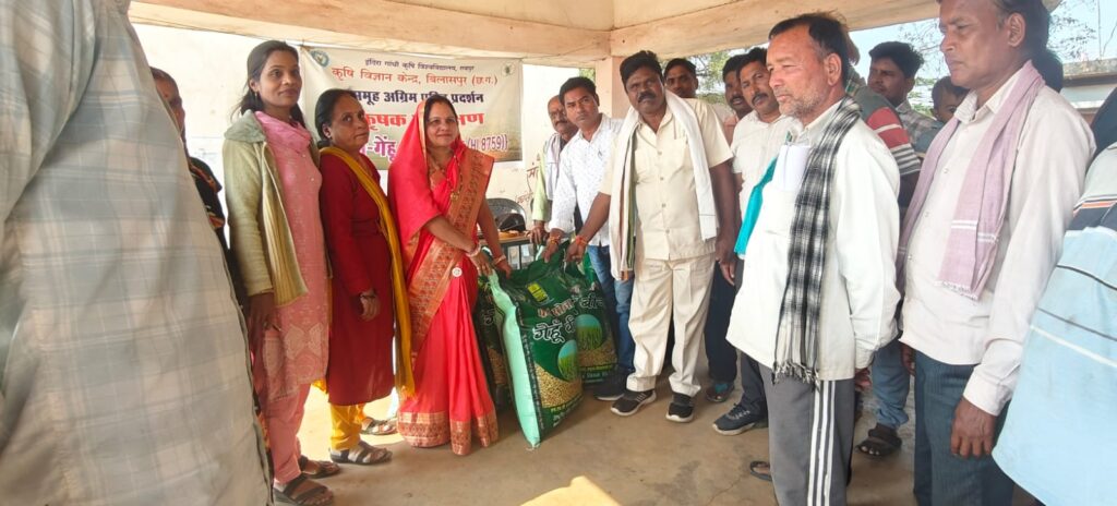 बिलासपुर। कृषि विज्ञान केंद्र बिलासपुर द्वारा संचालित गेहूँ में जैव सर्वधित किस्मो का समूह अग्रिम पंक्ति प्रदर्शन अंतर्गत ग्राम पचपेड़ी वि. खंड. मस्तूरी में दिनांक 20/11/2025 को कृषक प्रशिक्षण एवं आदान समाग्री बीज. जैव खाद वितरण कार्यक्रम सफलता पूर्वक आयोजन किया गया इस प्रशिक्षण के मुख्य अतिथि श्रीमती सतकली बावरे जिला पंचायत सदस्य प्रदर्शन की सराहना करते हुये कहाँ की कृषको के स्वास्थ्य में सुधार व रकबा बढ़ेगा क्यूंकि पूसा तेजस किस्म में जींक आयरन. प्रोटीन.पाया जाता है कार्यक्रम के विशिष्ट अतिथि सरपंच प्रतिनिधि चंद्रा प्रकाश कुर्रे द्वारा बताया गया की गेहूँ प्रदर्शन से हमारे ग्राम में फसल विविधिकरण को बढ़ावा मिलेगा कृषि विज्ञान केंद्र के वैज्ञानिक डॉ हेमकान्ति बंजारे द्वारा कृषको को उन्नत उत्पादन तकनिकके बारे में विस्तृत जानकारी दि! डॉ निवेदिता पाठक ने जैव सर्वधित किस्मो के पोषक तत्व की जानकारी दी इंजीनियर पंकज मिंज द्वारा गेहूँ की खेती में उन्नत तकनिक मशीन सीड कम फ़र्टिलाइज़र ड्रिल ट्रैक्टर से बोनी की जानकारी दिये एवं क्षेत्रीय ग्रा. कृ. वि. अधि. द्वारा कम लागत में अधिक उत्पादन प्राप्त करने व अधिक से अधिक किसान भईयों को गेहूँ फसल लगाने की सलाह दिया इस प्रशिक्षण में ग्राम के कृषक मित्र.कृषकगण व जनप्रतिनिधि उपस्थित थे।