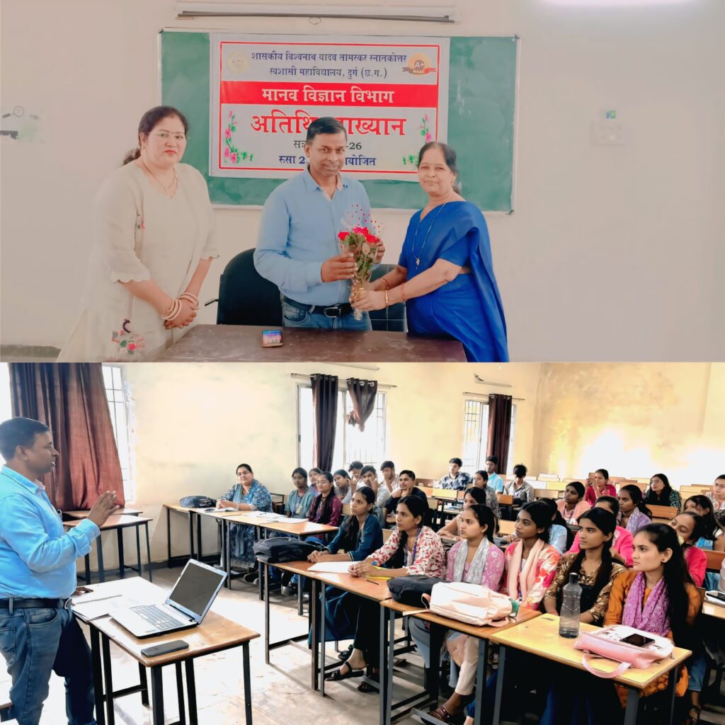 विश्वनाथ तमस्कर कॉलेज, दुर्ग के मानवशास्त्र विभाग में दिनांक 10 अक्टूबर 2025 को एक विशेष आमंत्रित व्याख्यान का आयोजन किया गया, जिसमें प्रमुख वक्ता के रूप में डॉ. रूपेन्द्र कवि, मानववैज्ञानिक व उप सचिव, राजभवन (छत्तीसगढ़), उपस्थित हुए। उन्होंने “छत्तीसगढ़ में जनजातीय विकास: मानववैज्ञानिक दृष्टिकोण” विषय पर सारगर्भित व प्रेरणादायक वक्तव्य दिया।
