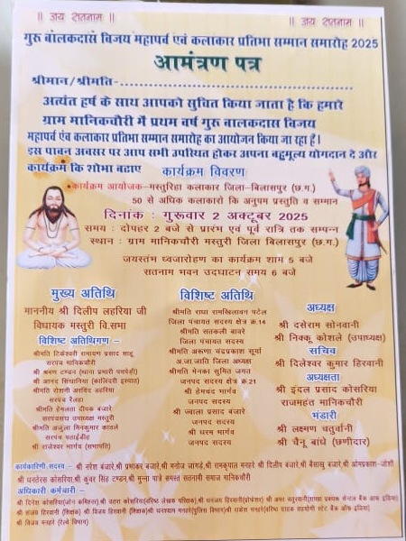 Home/Blog/प्रथम वर्ष गुरु बालकदास विजय दिवस पर कलाकारों सम्मान समारोह आज Blog प्रथम वर्ष गुरु बालकदास विजय दिवस पर कलाकारों सम्मान समारोह आज Ramgopal Bhargav2 weeks ago0 673 Less than a minute Facebook X LinkedIn WhatsApp Telegram Ramgopal Bhargav2 weeks ago0 673 Less than a minute Facebook X LinkedIn WhatsApp Telegram Share Facebook X LinkedIn WhatsApp Telegram Share via Email Print