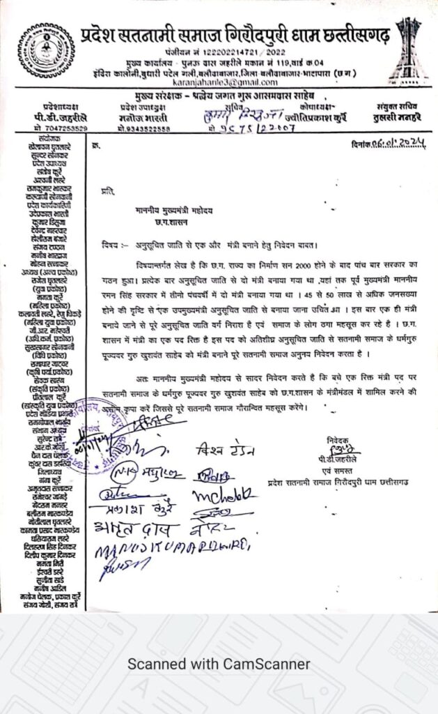 श्रद्धेय गुरु खुशवंत साहेब आरंग विधायक को कैबिनेट मंत्री बनाने की मांग हुई पुरी
