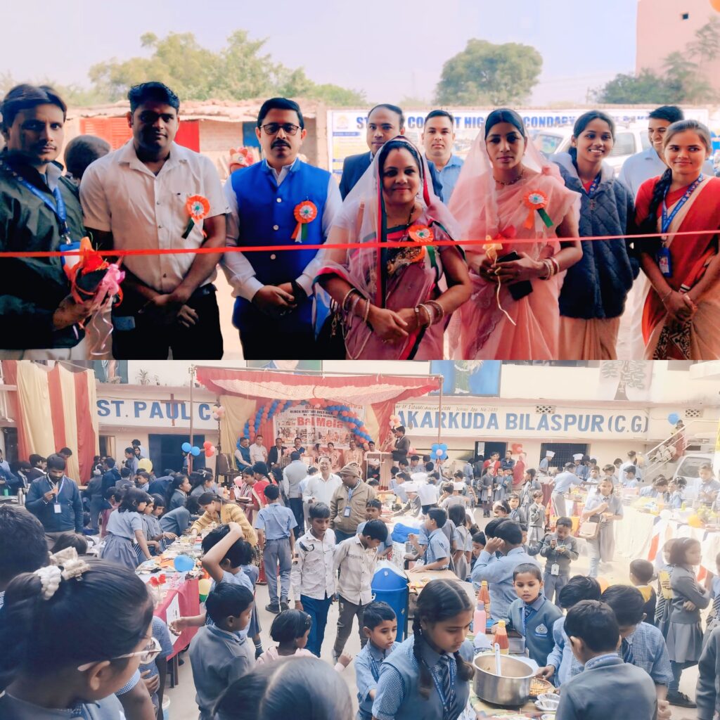 बिलासपुर । सेंट पॉल कॉन्वेंट हायर सेकेंडरी स्कूल बकरकुदा में आयोजन किया गया। बाल मेला महोत्सव 14 नवंबर 2025 दिन शुक्रवार को हमारे देश के प्रथम प्रधानमंत्री जवाहरलाल नेहरू के जन्म दिवस को बाल दिवस के रूप में मनाया जाता है। इस अवसर पर विद्यालय में बाल मेला महोत्सव उत्साह से मनाया गया । जिसमें मुख्य अतिथि के रूप में जिला पंचायत सदस्या श्रीमती सतकली बावरे व जनपद सदस्य ज्वाला बंजारे जवाहर नवोदय विद्यालय के प्राचार्य मनोज श्रीवास्तव,संकुल प्रभारी के.आर. रजक ,संकुल समन्वयक विश्वजीत राय ,मंगल निराला प्रोफेसर.,बकरकुदा सरपंच श्रीमती काजल भास्कर, डंगनिया सरपंच हर प्रसाद भार्गव ,टिकारी सरपंच टंकेश्वरी चंद्रसेन और अन्य सरपंच स्कूल डायरेक्टर दिलीप भार्गव, श्रीमती संगीता भार्गव , प्राचार्य रामगुलाब राय , उप प्राचार्य अरविंद भारती , सर्व धनपत , आनंद ,जांगडे , हिमानी अनंत, मेघा उपाध्याय, सुमन, संजीव, विक्रांत चंद्र सेन , दीपांशु, रिया , दुर्गा , वर्षा , कल्याणी , जगत, योगेश्वरी, शुभद्रा मरकाम, करिश्मा ,लखनी प्रगति ,नम्रता , कविता, अर्चना, दीपिका,मुस्कान. करिश्मा. अन्य शिक्षक और आदरणीय पालकगड़.एवं ग्रामवासियों नागरिकों की उपस्थिति में धूमधाम से मनाया गया जिसमें बच्चों ने अपने व्यवसाय कला का बढ़िया प्रदर्शन किया मुख्य अतिथियों ने विशेष रूप से बच्चों के मेहनत को साराह कहा यह बच्चों के उज्जवल भविष्य के लिए बहुत ही विशेष आयोजन रहा और इस आयोजन को सफल बताया।