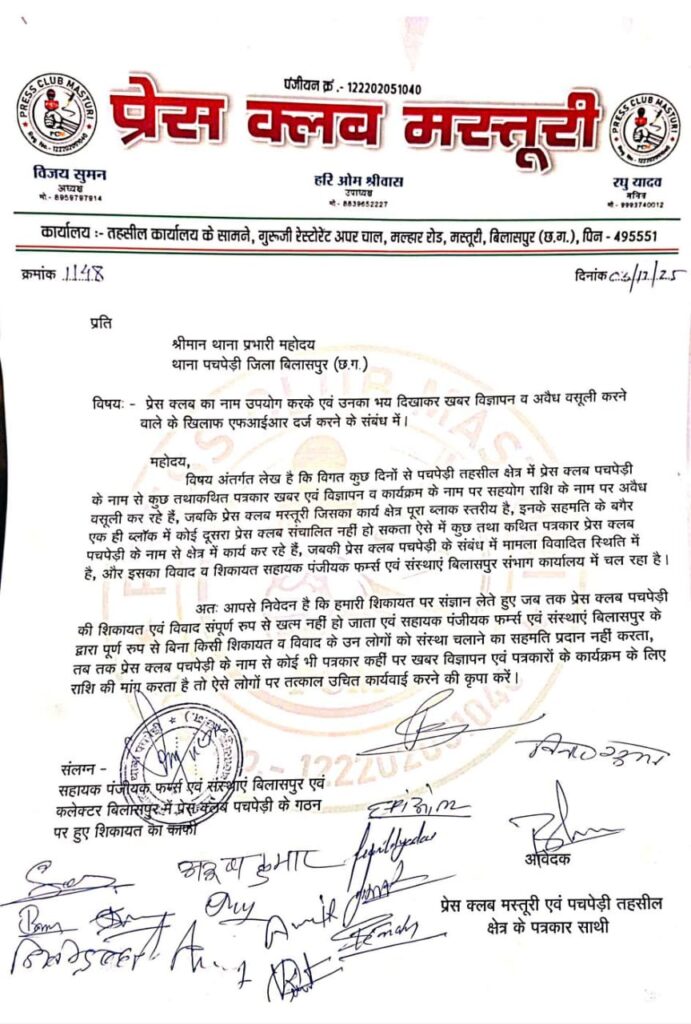 मस्तूरी प्रेस क्लब ने भी कुछ दिन पूर्व किया था शिकायत…