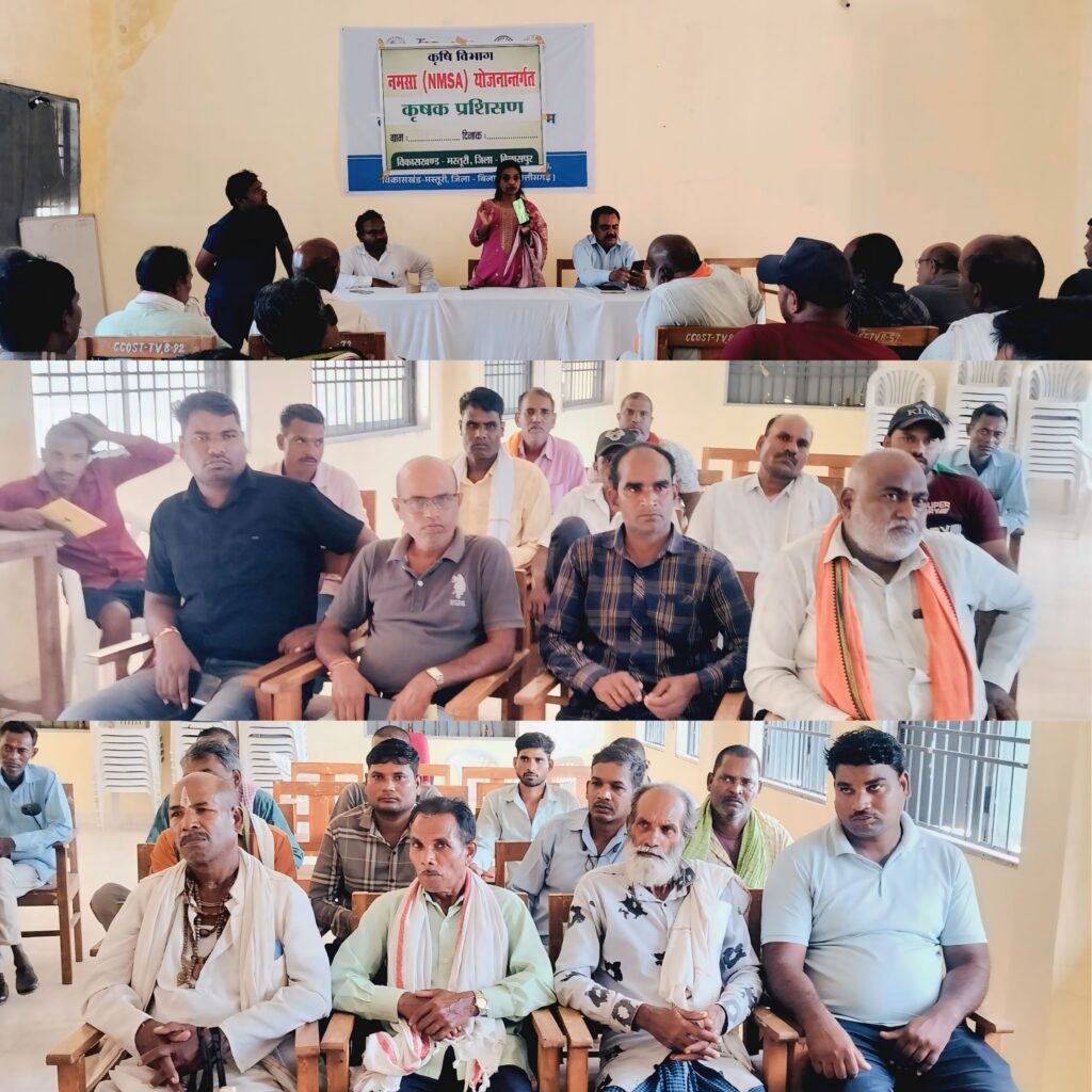बिलासपुर। राष्ट्रीय सतत कृषि मिशन (NMSA) योजना के अंतर्गत मस्तूरी वि.ख.के ग्राम पंचायत रैलहा के आश्रित ग्राम भड़हा के औद्योगिक प्रौद्योगिकी प्रशिक्षण भवन ग्राम भड़हा में एक दिवसीय प्रशिक्षण कृषि विभाग द्वारा आयोजित किया गया। जिसमें कृषि विज्ञान केन्द्र बिलासपुर के कृषि वैज्ञानिक एस.एम.एस.हेमक्रांति बंजारे ने किसानो को बीजोपचार,फसल उपचार,किट ब्याधी नियंत्रण हेतु रासायनिक एवं जैविक उपचार साथ ही उर्वरक उपयोग सम्बंधी विस्तृत जानकारी दी। तत्पश्चात वरिष्ठ कृषि विकास विकास अधिकारी ए.के. आहिरे ने बताया कि प्रशिक्षण के साथ साथ टिकाऊ खेती को बढ़ावा देने हेतु 150 किसानो के यहां लगभग 800 फल दार पौधे का रोपण कराया गया है। एवं 150 वर्मी टाका का निर्माण कराया गया है। कार्यक्रम में ग्रामीण कृषि विस्तार अधिकारी बलभद्र परिहार व चौकी दार प्रशिक्षण भवन कमल वर्मा उपस्थित रहे। इस योजना का लाभ कृषक सरोजिनी,रामसहारा,भागवत,कार्तिक, विनोद,बिंदुराम,अंजोर, मुकुंदा,बाजे,के साथ सभी किसानों को दिया गया है। इसी प्रकार इस टांको मे वर्मी खाद तैयार कर किसान अपने खेतो की भूमि को उपजाऊ बना सकेंगे साथ ही आगामी रबी फसलो हेतु दलहन,तिलहन एवम मोटा अनाज जैसे फसलों की खेती किये जाने पर इन्हे योजना के प्रावधान अनुसार बीज भी निःशुल्क वितरण किये जाने का कार्यक्रम तैयार किया गया है। केंद्र सरकार की इस योजना से किसानों की आर्थिक स्थिति मे सुधार होगा,जिससे किसान जागरूक होकर उन्नति की ऒर अग्रसर होंगे। इसी मंशा के अनुरूप किसान रूचि लेकर कार्य कर रहे है एवम किसानों मे ख़ुशी के लहर देखने को मिल रही है।
